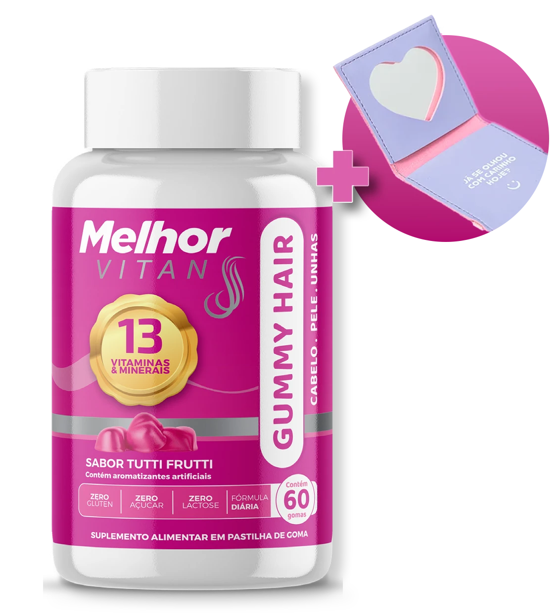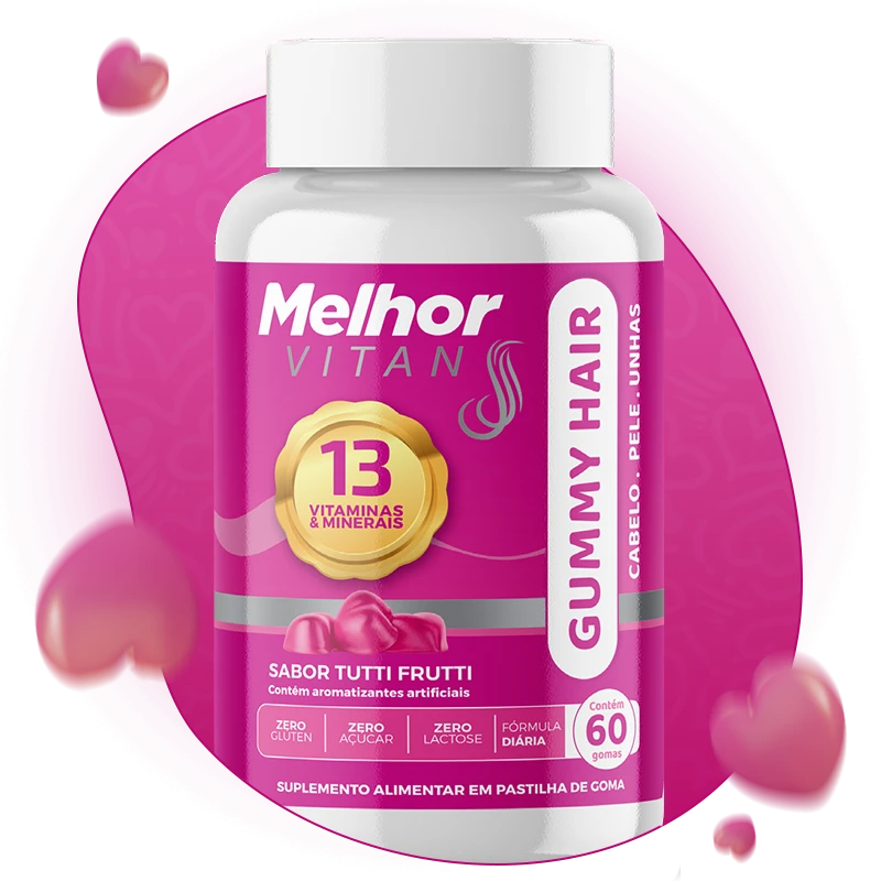 Gammy Hair é a primeira goma em formato de coração do mundo. É rica em vitaminas e minerais que auxiliam no crescimento dos cabelos e na redução da queda. Além disso, ajudam no brilho, hidratação e fortalecimento dos fios. Os componentes também contribuem para o crescimento das unhas, para a saúde da pele e para o fortalecimento da imunidade.
