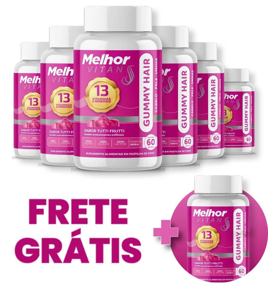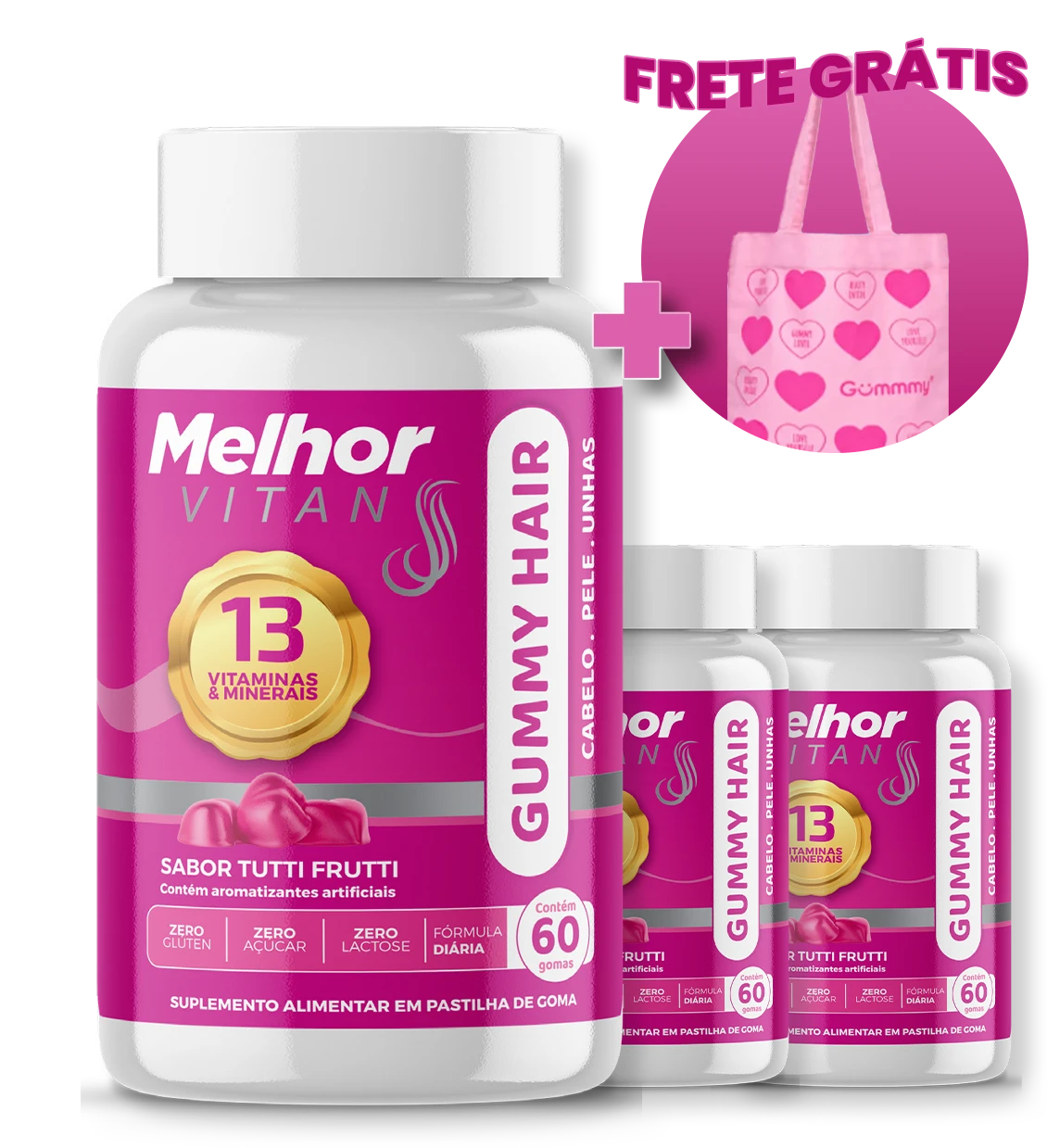 O Gammy Hair é feito à base de pectina vegetal e não contém gelatina ou outros ingredientes de origem animal. As gominhas possuem 11 tipos de vitaminas e minerais.